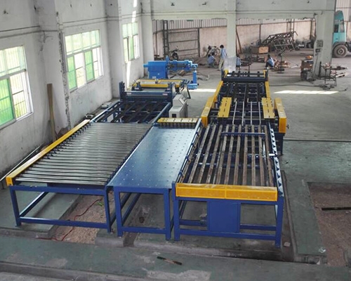 風(fēng)管生產(chǎn)6線是通風(fēng)管道加工的專用機(jī)械。該機(jī)器是由料架,自動(dòng)分料器,調(diào)平機(jī)、剪板機(jī)、剪角機(jī)、壓筋機(jī)、1號送料平臺(tái)、雙聯(lián)東洋骨機(jī)、2號送料平臺(tái)、共板法蘭雙聯(lián)機(jī)、數(shù)控送料小車和個(gè)自動(dòng)折彎機(jī)等機(jī)器組合而成的。電器控制部分采用全計(jì)算機(jī)PLC控制,該系統(tǒng)具有死循環(huán)反饋功能,生產(chǎn)精度和穩(wěn)定性高。所生產(chǎn)的風(fēng)管外形平整美觀,尺寸標(biāo)準(zhǔn)。裝配時(shí)工作輕松快捷,效率高;安裝后的風(fēng)管外形美觀,線條流暢,22秒出一根風(fēng)管,極大的提高了用戶的加工效率。