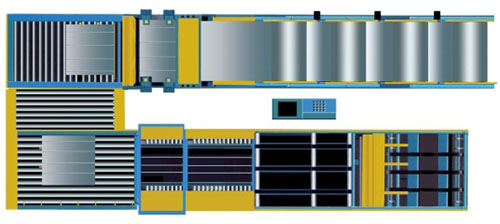風(fēng)管生產(chǎn)6線是通風(fēng)管道加工的專用機(jī)械。該機(jī)器是由料架,自動(dòng)分料器,調(diào)平機(jī)、剪板機(jī)、剪角機(jī)、壓筋機(jī)、1號送料平臺(tái)、雙聯(lián)東洋骨機(jī)、2號送料平臺(tái)、共板法蘭雙聯(lián)機(jī)、數(shù)控送料小車和個(gè)自動(dòng)折彎機(jī)等機(jī)器組合而成的。電器控制部分采用全計(jì)算機(jī)PLC控制,該系統(tǒng)具有死循環(huán)反饋功能,生產(chǎn)精度和穩(wěn)定性高。所生產(chǎn)的風(fēng)管外形平整美觀,尺寸標(biāo)準(zhǔn)。裝配時(shí)工作輕松快捷,效率高;安裝后的風(fēng)管外形美觀,線條流暢,22秒出一根風(fēng)管,極大的提高了用戶的加工效率。